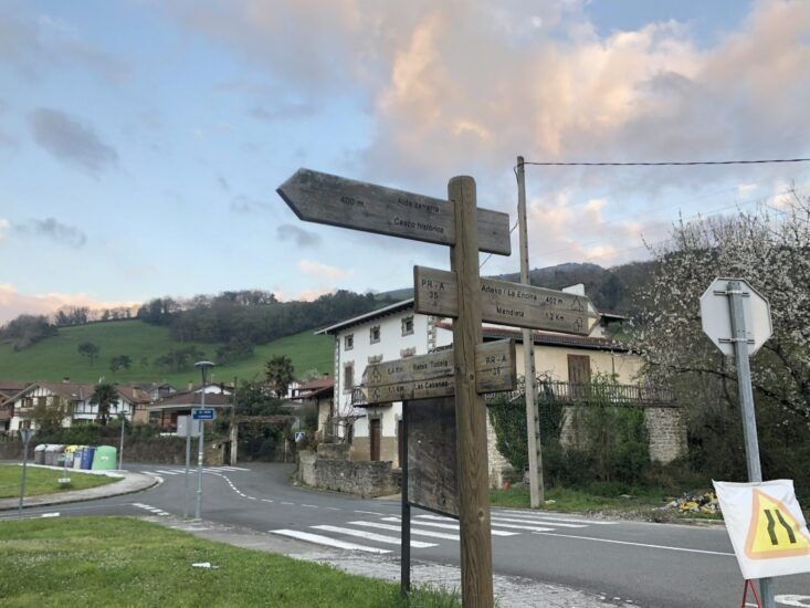 Dejaremos atrás una preciosa panorámica del Artziniega. Todo el camino discurre por carretera. Hasta el momento iremos viendo señales indicativas de madera con el itinerario.