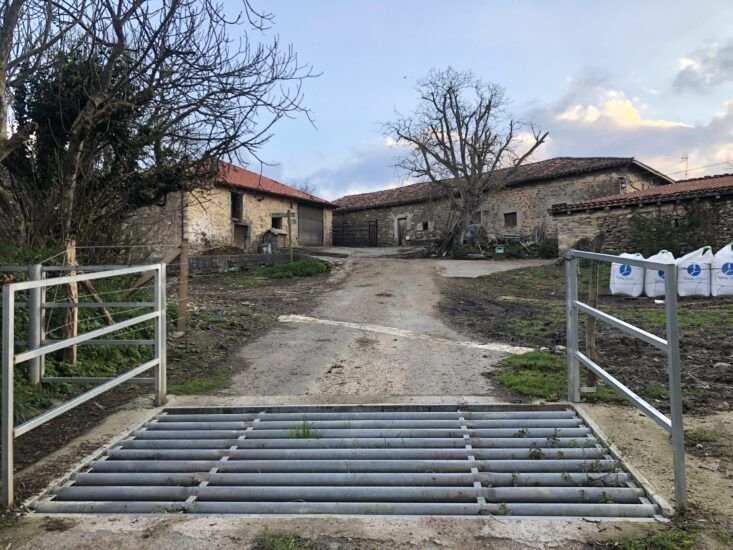 Continuaremos por la carretera cuesta arriba hasta llegar a las caserias, donde nos encontraremos un paso canadiense y las cuadras. Aquí cruzaremos el paso y tomaremos el camino de la izquierda. A partir de aquí el camino empezará a estar bastante embarrado por el tránsito de máquinas y ganado.