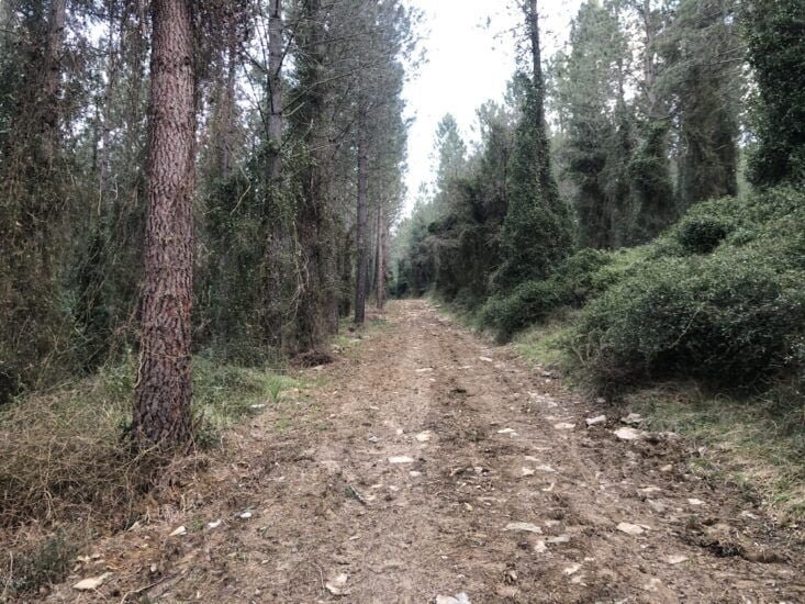 Los siguientes dos cruces de caminos tendremos que tomar el camino de la derecha. Según vayamos caminando nos adentraremos en un bosque de pinos por dónde discurre el camino hacia el monte Montenegro.